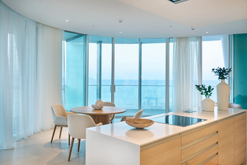 Τα διαμερίσματα διαθέτουν μοντέρνο και έξυπνο open plan σχεδιασμό, ο οποίος μεγιστοποιεί τη διάχυση φυσικού φωτός καθώς και την πρόσβαση σε μαγευτική θέα. Ενδεικτικά, το σαλόνι έχει γυάλινες μπαλκονόπορτες που είναι ειδικά σχεδιασμένες για να ανοίγουν με τέτοιο τρόπο έτσι ώστε να ενώνεται ο χώρος του σαλονιού και της καλυμμένης βεράντας. Λαμβάνοντας υπόψη τα υψηλότερα πρότυπα του σύγχρονου αρχιτεκτονικού σχεδιασμού, την άνεση, την ανθεκτικότητα και τη λειτουργικότητα, τα διαμερίσματα είναι σχεδιασμένα με υψηλής ποιότητας υλικά και τεχνικές προδιαγραφές. Όλα τα διαμερίσματα διαθέτουν πιστοποίηση ενεργειακής απόδοσης Α, ενσωματώνοντας παράλληλα τεχνολογία και εξοπλισμό αιχμής, συμβάλλοντας στη μείωση του περιβαλλοντικού αποτυπώματος.