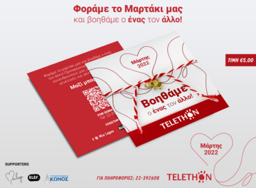 Μάρτης, ο πρώτος μήνας της Άνοιξης και η αρχή της «νέας ζωής». Ο μήνας που έχει συνδεθεί με το φρέσκο, το όμορφο και τη λευκή σελίδα για την επόμενη μέρα. Εδώ και χρόνια, ο μήνας αυτός ταυτίζεται παράλληλα και με την προσφορά προς τον συνάνθρωπο μας, με τα βραχιόλια του Μάρτη ή αλλιώς «Μαρτάκια», να μπαίνουν στην καθημερινότητα μας ενισχύοντας φιλανθρωπικούς οργανισμούς! Στους πρωταγωνιστές των βραχιολιών του Μάρτη εδώ και αρκετό καιρό είναι φυσικά το TELETHON Κύπρου, που μαζί με τη δημιουργό Μαρία Λαγού (Mia Lagou), από το 2017, μεταδίδουν θετική ενέργεια στις ζωές μας με τα Μαρτάκια τους, συνεισφέροντας για μια καλύτερη ζωή στους συνανθρώπους μας με νευρομυϊκές, γενετικές και άλλες παθήσεις.