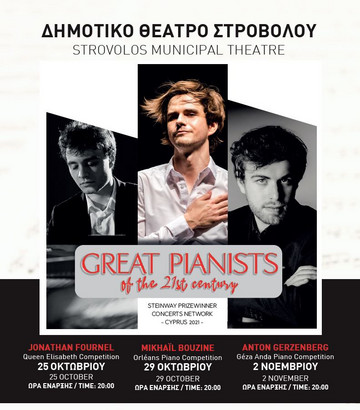 Οι Υπεραγορές ΑΛΦΑΜΕΓΑ σε συνεργασία με τον Πολιτιστικό Οργανισμό Avantgarde προσφέρουν κουπόνια για δωρεάν εισιτήρια για τρία μοναδικά ρεσιτάλ πιάνου, στο πλαίσιο της εκστρατείας εταιρικής κοινωνικής ευθύνης των Υπεραγορών για τον πολιτισμό. Μέσω αυτής της συνεργασίας, το μουσικόφιλο κοινό της Κύπρου θα έχει την ευκαιρία, κατά το τέλος Οκτωβρίου και αρχές Νοεμβρίου, να παρακολουθήσει από κοντά τους βιρτουόζους πιανίστες Jonathan Fournel (25/10), Mikhaïl Bouzine (29/10) και Anton Gerzenberg (02/11), στο Δημοτικό Θέατρο Στροβόλου. Οι τρεις καταξιωμένοι μουσικοί έχουν κερδίσει τους μεγαλύτερους διαγωνισμούς πιάνου που διοργανώνονται σε όλο τον κόσμο και έχουν ήδη αφήσει το στίγμα τους στη μουσική, παρά τη νεαρή τους ηλικία.