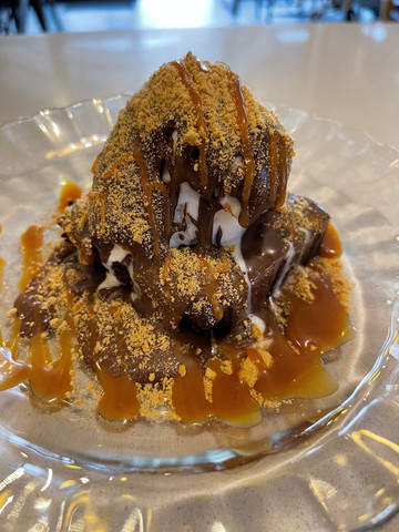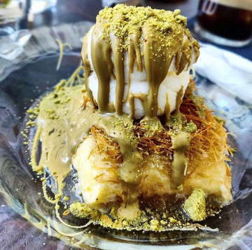 Και επειδή η απόλαυση δεν σταματάει εκεί, φεύγοντας ο επισκέπτης μπορεί να πάρει μαζί του ένα από τα υπέροχα ταψιά που περιμένουν στην προθήκη, διαλέγοντας από σειρά επιλογών όπως σοκολατόπιτες, καρυδόπιτες, εκμέκ και πολλά άλλα ανατολίτικα γλυκά.
