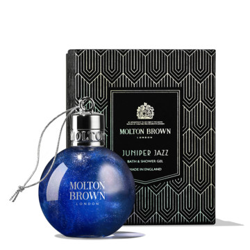 Εμποτίστε το χειμερινό σας μπάνιο με λαμπερή παρακμή, ξεκινώντας με το Juniper Jazz Bath & Shower Gel; βαθιά, νυχτερινή μπλε σκιά που θυμίζει βοτανικά μούρα αρκεύθου. Θρέψτε το χειμερινό δέρμα με το Λοσιόν σώματος για να δημιουργήσετε μια αίσθηση μεγάλης διάρκειας. Αναδημιουργήστε ένα ζωντανό πάρτι στο σπίτι σας με το Single Wick Candle προσθέτοντας μια επιπλέον λάμψη στο δέντρο σας με το Εορταστικό μπιχλιμπίδι. Η εντυπωσιακή συσκευασία της συλλογής έχει ένα σχέδιο εμπνευσμένο από αρ ντεκό με μια σύγχρονη συστροφή. Οι συσκευασίες δώρων είναι χαραγμένες με λάμπερό ολογραφικό φύλλο που διοχετεύει το έναστρο μαγεία μιας μεγάλης αίθουσας χορού.
