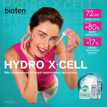 Για επιδερμίδα που χαμογελάει και αντανακλά ενέργεια και ξεκούραση, κάνε μία βουτιά στην απόλυτη ενυδάτωση που προσφέρει η bioten Hydro X-Cell!