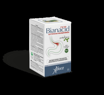 Παράλληλα το μοριακό σύμπλεγμα Poliprotect®, που προέκυψε μέσα από έρευνες της Aboca και περιέχεται στο Neo Bianacid, χάρη στις βλεννο-προσκολλητικές του ιδιότητες, αναπαράγει την προστατευτική δράση της φυσιολογικής βλέννης εξουδετερώνοντας άμεσα την καούρα, ενώ την ίδια στιγμή καταπραΰνει την παλινδρόμηση.