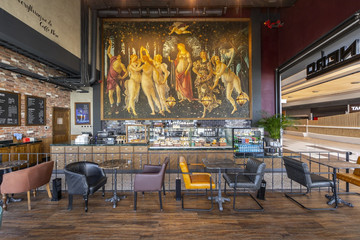 Όπως κάθε κατάστημα Caffè Nero, κρύβει κάτι ξεχωριστό, έχοντας το δικό του χαρακτήρα. Εμπνευσμένο από την αυθεντική ατμόσφαιρα των café της Ιταλίας, το Caffè Nero στο Metropolis Mall είναι ένας κομψός χώρος με μοναδικά στοιχεία Ιταλικής Αναγέννησης, όπου δεσπόζει το σκούρο ξύλο και το πράσινο μάρμαρο, δημιουργώντας μια ζεστή και φιλόξενη ατμόσφαιρα. Κυρίαρχη θέση έχει το αριστούργημα της Ιταλικής Αναγέννησης, το εντυπωσιακό έργο Primavera του Sandro Botticelli, το οποίο επισφραγίζει τη μοναδικότητα του χώρου.