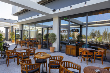 Ο ιδιαίτερος φωτισμός σε συνδυασμό με το ξύλινο πιάνο συμβάλλουν στην εκλεπτυσμένη ατμόσφαιρα. Το μεγάλο ξύλινο τραπέζι μελέτης ενδείκνυται για στιγμές συγκέντρωσης, ενώ αναπαυτικά καθίσματα και καναπέδες τόσο στον εσωτερικό όσο και στον εξωτερικό χώρο υπόσχονται ευχάριστα διαλείμματα από τα ψώνια, ώστε να απολαύσετε τον καφέ σας με την παρέα σας.