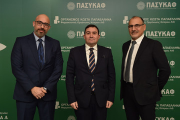 από αριστερά προς δεξιά: ο Εκτελεστικός Διευθυντής του Συνδέσμου κ Νικόλας Φιλίππου, Γραμματέας Υπουργικού Συμβουλίου κ Θεοδόσης Α. Τσιόλας και ο Γενικός Διευθυντής Φαρμακευτικής Οργάνωσης Κύπρου κ Πανίκος Βασιλείου