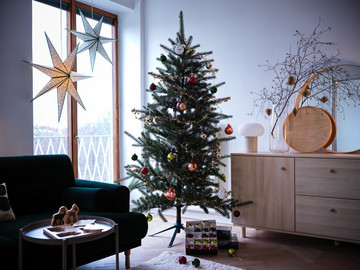 Στις επιλογές για τον στολισμό ξεχωρίζει το διακοσμητικό έλατο από ατσάλι VINTER 2021, που αποτελεί λευκό καμβά για τη φαντασία σας. Μπορείτε να χρησιμοποιήσετε τα κλαδιά του για να κρεμάσετε κάρτες, μικρά δώρα ή παραδοσιακά στολίδια, δημιουργώντας τη δική σας γιορτινή ατμόσφαιρα. Για τον στολισμό του επιλέξτε στολίδια σε φυσικές ή έντονες αποχρώσεις, ανάλογα με το στιλ που σας ταιριάζει.