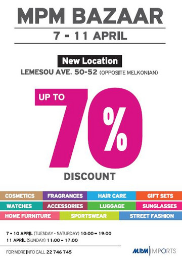 Το θεσμό που ξεκίνησε από τον Απρίλιο του 2013 συνεχίζει η εταιρία MPM Imports, παρουσιάζοντας το MPM Bazaar, το οποίο θα πραγματοποιηθεί το πενταήμερο 7-11 Απριλίου 2021 στην καινούργια τοποθεσία – Λεωφόρο Λεμεσού 50-52 (έναντι Μελκονιάν) στη Λευκωσία!