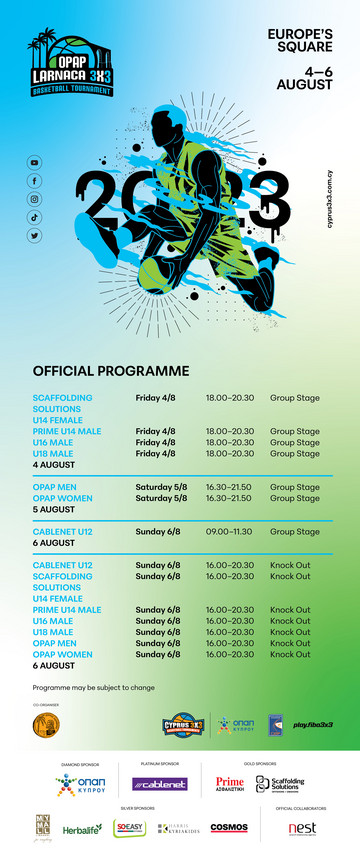 Πιο κάτω μπορείτε να δείτε το αναλυτικό πρόγραμμα του OPAP Larnaca 3×3 2023.