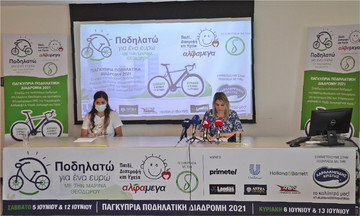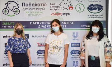 Σε δημοσιογραφική διάσκεψη που πραγματοποιήθηκε την Τρίτη 1/6 οι Υπεραγορές ΑΛΦΑΜΕΓΑ παρουσίασαν την ποδηλατική διαδρομή της Μαρίνας Θεοδώρου «ΠΟΔΗΛΑΤΩ ΓΙΑ ΕΝΑ ΕΥΡΩ» η οποία από φέτος εντάσσεται στις δράσεις του προγράμματος Εταιρικής Κοινωνικής Ευθύνης των Υπεραγορών «ΠΑΙΔΙ, ΔΙΑΤΡΟΦΗ ΚΑΙ ΥΓΕΙΑ».