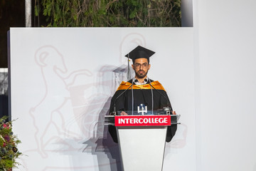 Κύριος ομιλητής της τελετής ήταν ο Δρ. Ηλίας Μαρκάτζιης, Διευθυντής Μέσης Τεχνικής και Επαγγελματικής Εκπαίδευσης και Κατάρτισης που ανέφερε μεταξύ άλλων ότι η τελετή αποφοίτησης ενός σημαντικού κολλεγίου όπως το Ιntercollege, αποτελεί μια γιορτή για όλους όσοι πιστεύουν και τιμούν την Επαγγελματική Εκπαίδευση και Κατάρτιση. Ταυτόχρονα αποτελεί μια σημαντική στιγμή για τη βιομηχανία και τις υπηρεσίες του τόπου μας, που υποδέχονται επίσημα σήμερα μια νέα συγκομιδή αποφοίτων υψηλού επιπέδου