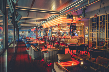 Η ατμόσφαιρα και η ενέργεια του χώρου εμπλουτίζεται από την επιλεγμένη συλλογή μουσικής, η οποία δένει εξαιρετικά με την κομψότητα του εστιατορίου και διασφαλίζει ότι κάθε επίσκεψη θα συνοδεύεται από το ηχητικό φόντο που θα συμπληρώνει τη συνολική αισθητική εμπειρία. Μετά το δείπνο, το εστιατόριο μεταμορφώνεται σε ένα παλλόμενο κέντρο ενέργειας και ενθουσιασμού, όπου το πάρτι… συνεχίζεται!