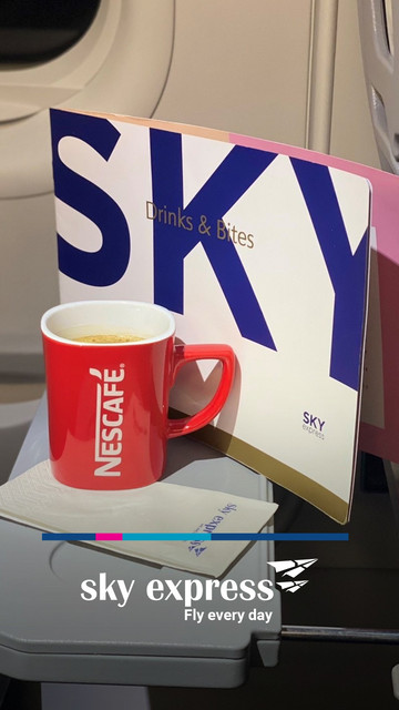 Με νέους προορισμούς, νέα αεροσκάφη και τώρα με νέες υπηρεσίες, η SKY express συνεχίζει να αλλάζει το τοπίο των αερομεταφορών. Το SKY Drinks & Bites είναι η πιο πρόσφατη υπηρεσία της ταχύτερα αναπτυσσόμενης ελληνικής αεροπορικής εταιρείας..