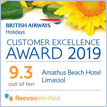 Όπως δήλωσε η Claire Bentley, Διευθύνουσα Σύμβουλος της British Airways Holidays, το Amathus Beach Hotel αναδείχθηκε ως ένα από τα κορυφαία παγκοσμίως ξενοδοχεία για το 2019, αφού εντυπωσίασε τους πελάτες του ταξιδιωτικού τους πρακτορείου, προσφέροντάς τους αξέχαστες στιγμές διακοπών.