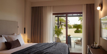 Η διαμονή στη σουίτα ήταν ανεπανάληπτη, σε φιλοσοφία… less is more! Μινιμαλιστική διάθεση, ξύλο και στρώμα μοναδικό στο οποίο απολαμβάνεις πραγματικά ύπνους στ’ αστέρια. Ο προσεγμένος σχεδιασμός, συνδυάζει παράλληλα και φιλικές προς το περιβάλλον πρακτικές, γεγονός ιδιαίτερα ευδιάκριτο. Διασχίζεις, λοιπόν, το άνετο δωμάτιο, ανοίγεις τις κουρτίνες…το άπλετο φως σε λούζει σε γενναιόδωρες δόσεις και μπροστά σου ξεπροβάλλεται η υπέροχη overflow πισίνα. Έξω αντικρίζεις ποικίλες αποχρώσεις πράσινου και στο βάθος τη θάλασσα. Το λευκό κρασί ήταν ήδη παγωμένο, ομολογουμένως η πιο κατάλληλη παρέα για… απόλυτη χαλάρωση σε συνδυασμό με δροσερές βουτιές! Like a King! Εξάλλου, το όνομα του ξενοδοχείου, «Αστερίων» προέρχεται από τον πρώτο βασιλιά της Κρήτης και σύζυγο της Ευρώπης.