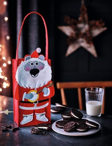Μια χαριτωμένη τσαντούλα με έναν χριστουγεννιάτικο χαρακτήρα και μέσα μια μικρή έκπληξη! Δύο σειρές νόστιμα κουλουράκια και μπισκότα με κρέμα – τέλεια για να χωρίζονται στα δύο και να γίνονται βούτημα σε ένα ποτήρι γάλα, ή να σερβίρονται απλά σε ένα πιάτο, για να τα βρει ο Άγιος Βασίλης