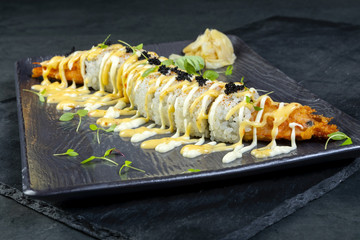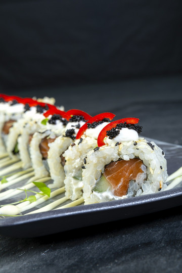 Από το μενού μπορείτε να απολαύσετε μια μεγάλη γκάμα από χειροποίητα sushi και uramaki με σολομό, τόνο, γαρίδες, κιτρινόπτερο αλλά και το λαχταριστό Crispy Tempura Calamari Roll που τηγανίζεται με ψητό καλαμάρι, κουλούμπρα, πορτοκαλί τομπίκο και μαγιονέζα teriyaki!