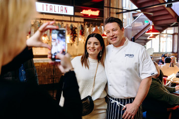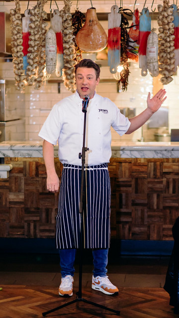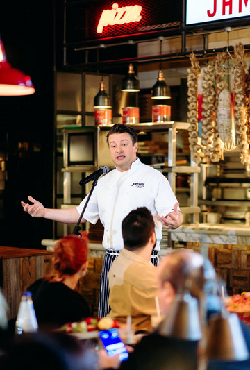 Οι καλεσμένοι είχαν την ευκαιρία να γνωρίσουν τον Jamie Oliver από κοντά και να απολαύσουν ένα ξεχωριστό για την περίσταση μενού, φτιαγμένο από τους chefs του εστιατορίου, αλλά και από τον Jamie Oliver.