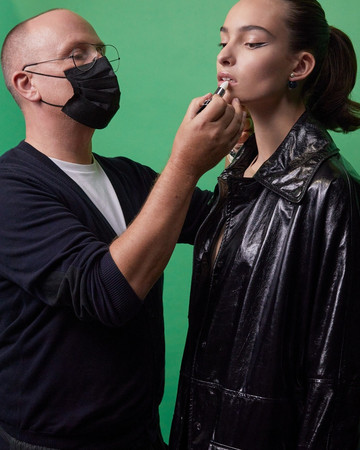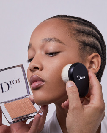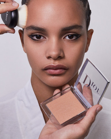 Στη συνέχεια άπλωσα το Dior Backstage Face & Body Primer 001 Universal, που καμουφλάρει τις ατέλειες και παρέχει τέλεια διάρκεια στο Dior Backstage Face & Body Foundation, το οποίο επέλεξα σε διαφορετικές αποχρώσεις ανάλογα με την επιδερμίδα του κάθε μοντέλου. Τέλος, ολοκλήρωσα την επιδερμίδα με ένα ελαφρύ, διάφανο πέρασμα της Dior Backstage Face & Body Powder-No-Powder».