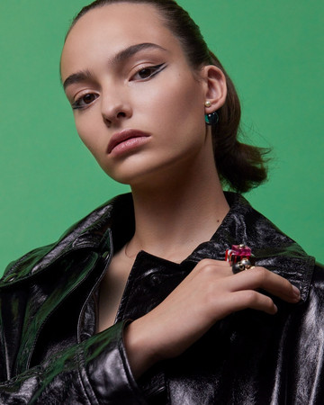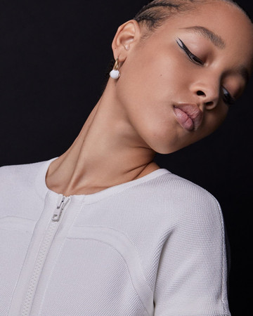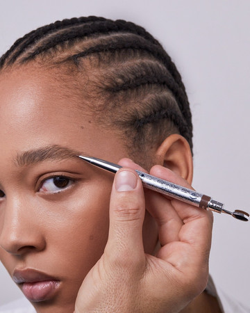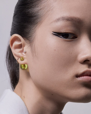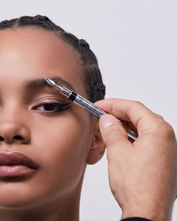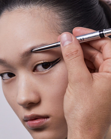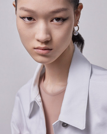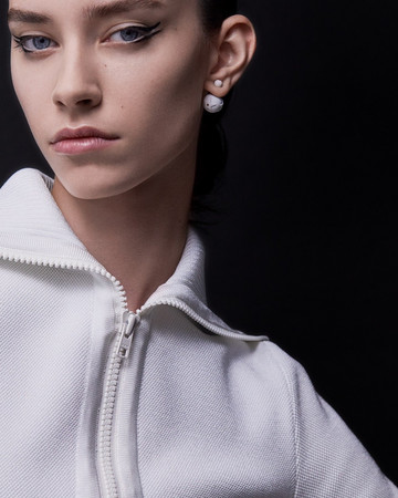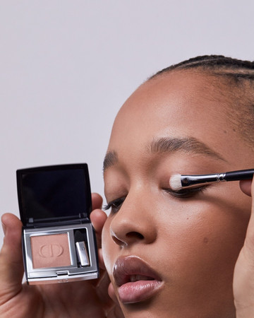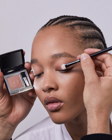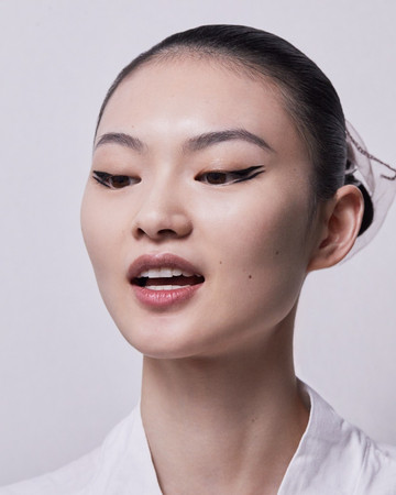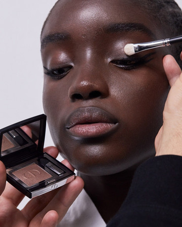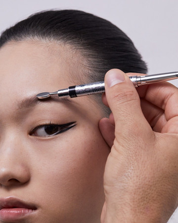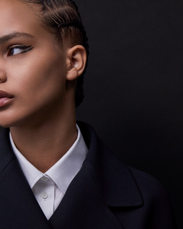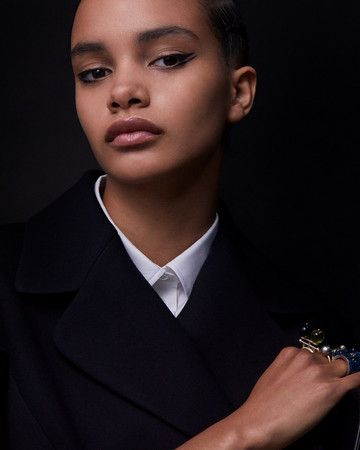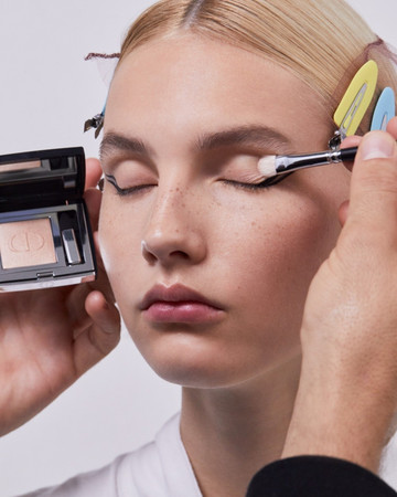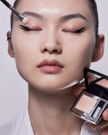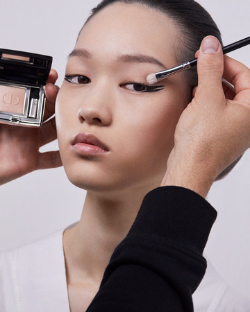 ΜΑΤΙΑ: Διπλή γραμμή eyeliner με το Diorshow On Stage Liner 096 Vinyl Black, διαχωρισμένη με μια γραμμή Diorshow Khôl 529 Beige Khôl. Τα βλέφαρα έδειχναν φυσικά με Mono Couleur Couture 434 Grège Velvet, 443 Cashmere Matte, 481 Poncho Satin, 530 Tulle Satin, ή 573 Nude Dress Satin (αποχρώσεις, επιλεγμένες αναλόγως τον τόνο επιδερμίδας). Το σχήμα των φρυδιών επιτεύχθηκε με το Diorshow Kabuki Brow Styler (αποχρώσεις, επιλεγμένες αναλόγως τον τόνο επιδερμίδας).