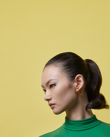 Τα μαλλιά ήταν πιασμένα σε αλογοουρές σε στυλ 60s.