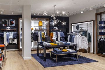 Την εμπειρία ολοκληρώνει ο εσωτερικός χώρος των 170 τ.μ που παραμένει πιστός στη μοντέρνα αισθητική και τον minimal σχεδιασμό, ενώ στο κατάστημα κυριαρχούν τα χρώματα του λευκού και του ασημένιου, ιδανικά συνδυασμένα με ιδιαίτερες πινελιές από ξύλο και μέταλλο. Η κάθε συλλογή αναδεικνύεται με ξεχωριστό τρόπο μέσα από τους ειδικά διαμορφωμένους χώρους, ενώ η tailor-made εσωτερική διακόσμηση του καταστήματος αντανακλά ένα μείγμα από παραδοσιακές και σύγχρονες επιδράσεις που αποτελούν τη βάση της preppy κληρονομιάς του Tommy Hilfiger. Ακόμα, το “classic, American cool” πνεύμα του brand, αποκτά πρωταγωνιστικό ρόλο μέσα από τα modern vintage φωτιστικά και τα προσαρμοσμένα έργα τέχνης που δημιουργούν το τέλειο αποτέλεσμα.