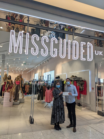 Στη φωτογραφία η λειτουργός Νατάσσα Σάββα του οργανισμού Hope for Children CRC Policy Center, παραλαμβάνει την επιταγή από τον Πέτρο Χαραλάμπους, Marketing Executive του Missguided Cyprus.
