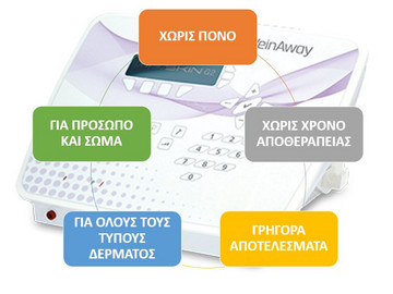 Η επαναστατική τεχνολογία VeinAway™ αντιμετωπίζει τις ευρυαγγείες και άλλες δερματικές παθήσεις σε μέρη όπου η σκληροθεραπεία ή άλλες μεθόδοι δεν μπορούν να πραγματοποιηθούν με την ίδια ασφάλεια, όπως οι αστράγαλοι και το πρόσωπο. Σε αντίθεση με άλλες θεραπείες, δεν έχει παρενέργειες, όπως υπέρ- ή υπόμελάγχρωση ή ουλές.