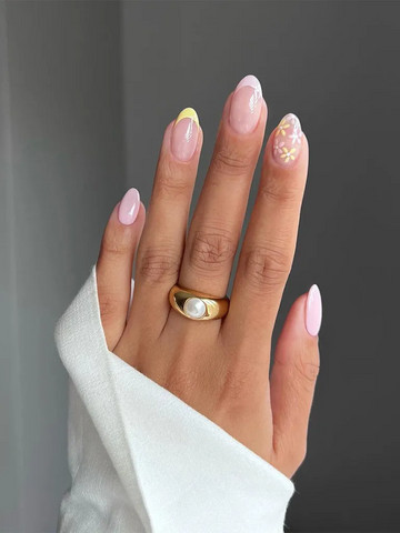 Για τη βάση του manicure της, προτίμησε μια απαλή ροζ απόχρωση, ενώ η λεπτομέρεια που λατρέψαμε είναι τα «ανθισμένα» λουλούδια σε άσπρο χρώμα με ροζ πινελιές που χαρίζουν ένα cute και girly αποτέλεσμα. Για περισσότερη ‘δόση’ λάμψης, η Hailey πρόσθεσε μικρά διαμαντάκια που κάνουν τα λουλούδια να φαίνονται ακόμη πιο wow!