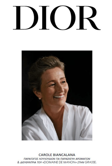 Επιβεβαιώνει ακράδαντα ότι το να είσαι γυναίκα σήμερα σημαίνει ότι «είσαι ελεύθερη να επιλέξεις, να έχεις τις δικές σου ιδέες και τα δικά σου σχέδια». Είναι ένας ορισμός που προσωποποιεί σε καθημερινή βάση ως συνεργάτης παραγωγός των αρωμάτων Dior, για τα οποία διατηρεί τις συγκομιδές μαγιάτικου τριαντάφυλλου, γιασεμιού της Grasse και κρίνου Tuberose από το «Domaine de Manon» της Grasse. Διότι επέλεξε με θάρρος να καλλιεργήσει τη γη των προγόνων της, σεβόμενη το περιβάλλον, παρά τη δυσκολία της δουλειάς.