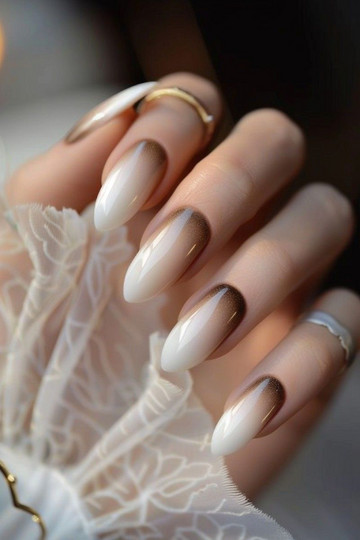 5. Ombre και Gradient: Το ombre συνεχίζει να είναι αγαπημένο: Συνδυασμοί ζεστών και ουδέτερων χρωμάτων. Μικρές πινελιές glitter στο τελείωμα για πιο sophisticated look. Αυτό το στυλ είναι εύκολο να προσαρμοστεί και σε κοντά ή μακριά νύχια, δημιουργώντας αίσθηση βάθους και κίνησης.