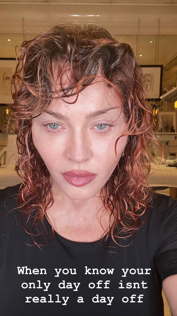 Η «βασίλισσα» της ποπ, πόζαρε στο Instagram με τους εκατομμύρια ακολούθους της, σε μία διαφορετική selfie φωτογραφία, για να επισημάνει στην περιγραφή, ότι: «Όταν ξέρεις ότι η μοναδική μέρα που έχεις ρεπό, δεν είναι πράγματι ρεπό».