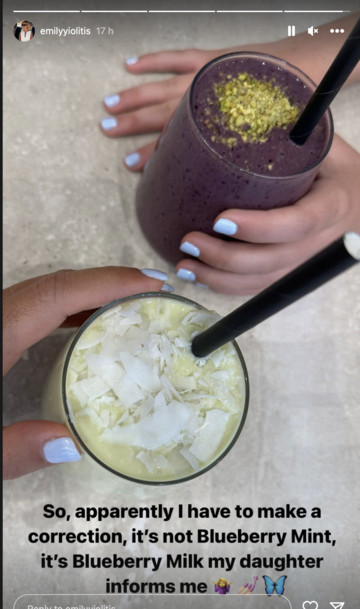 Σε μια από τις φωτογραφίες που ανέβασε η Έμιλυ Γιολίτη μας έδειξε το μανικιούρ μαμάς και κόρης. Οι δυο τους υιοθέτησαν ένα από τα τελευταία nail trends, το “blueberry milk”.