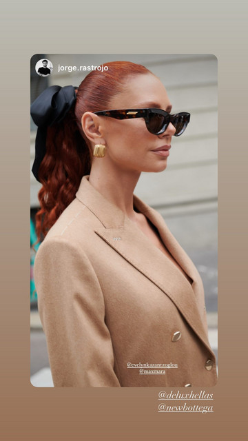 Ωστόσο, αυτό που μας τράβηξε το ενδιαφέρον ήταν η λεπτομέρεια στο hairlook της που αναβάθμισε την όλη εμφάνισή της. Το fashion girl έκανε ένα sleek ponytail, τοποθετώντας έναν μεγάλο μαύρο φιόγκο στην αλοογουρά της και κατάφερε να προσθέσει έξτρα πόντους κομψότητας στο look της.