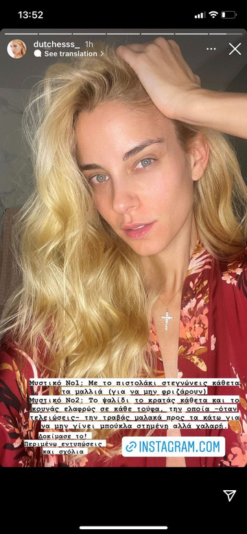 Πρόσφατα λοιπόν, μέσα από ένα story της έδωσε οδηγίες για το πως μπορούμε να φτιάξουμε τις τέλειες μπούκλες. Σύμφωνα λοιπόν με την Δούκισσα, το πρώτο μυστικό είναι να στεγνώνεις τα μαλλιά σου με το πιστολάκι κάθετα και το δεύτερο μυστικό της, είναι να κρατάς το ψαλίδι προς τα κάτω και να το κουνάς ελαφρά σε κάθε τούφα, την οποία μόλις τελειώσεις την τραβάς ελαφρώς προς τα κάτω ώστε να γίνει πιο ανάλαφρη.