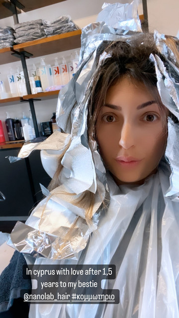 Η Κύπρια ηθοποιός με την άφιξή της στην Κύπρο, επισκέφθηκε το κομμωτήριο για να περιποιηθεί τα μαλλιά της και άλλαξε την απόχρωση των μαλλιών της.