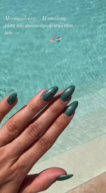Από τις celebrities που φαίνεται ότι λατρεύουν τη συγκεκριμένη τάση είναι η Κατερίνα Καινούργιου, που την υιοθέτησε στο πρόσφατο μανικιούρ της. Η παρουσιάστρια μοιράστηκε φωτογραφία από το τα mermaid nails της και προτείνει ανεπιφύλακτα το καλοκαιρινό nail trend.