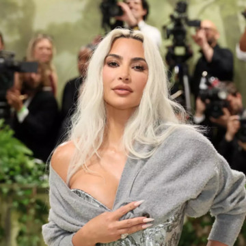 Kim Kardashian: Με τους αγαπημένους της γήινους τόνους στο μακιγιάζ και απόλυτα ανεπιτήδευτα τα icy blonde μαλλιά της.