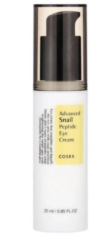Κρέμα ματιών με βλεννίνη σαλιγκαριού, πεπτίδια και νιασιναμίδη που ενυδατώνει, ενισχύει την ελαστικότητα και μειώνει την εμφάνιση των μαύρων κύκλων.