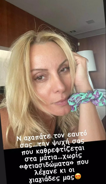 «Να αγαπάτε τον εαυτό σας. Την ψυχή σας που καθρεφτίζεται στα μάτια, χωρίς “φτιασιδώματα” που λέγανε και οι γιαγιάδες μας» έγραψε στη λεζάντα της ανάρτησης.