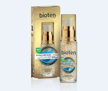 Κάντε δική σας τη σειρά bioten HYALURONIC GOLD, δώστε μια χρυσή λάμψη στην καθημερινότητά σας και αφήστε τους άλλους απλά να μαντεύουν την ηλικία σας!