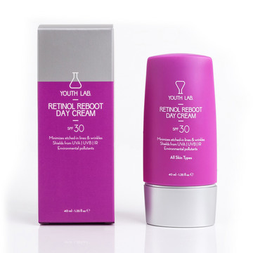 H καινοτόμα σειρά υψηλής αποτελεσματικότητας RETINOL REBOOT της YOUTH LAB. ολοκληρώνεται με την προσθήκη της νέας κρέμας ημέρας με Ρετινοειδή νέας γενιάς και αντηλιακή προστασία μαζί!