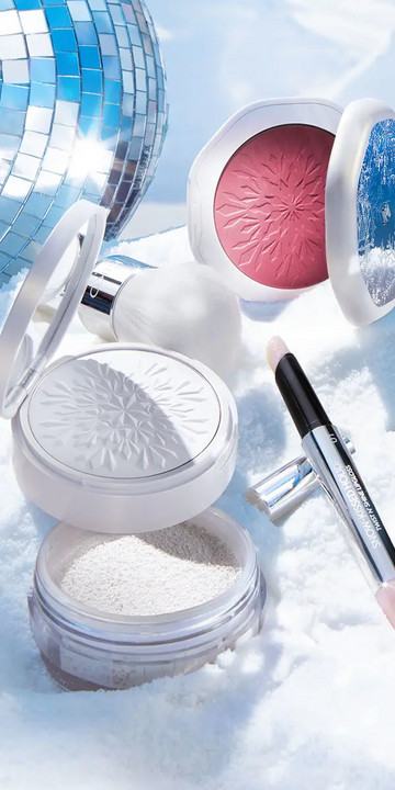 Προσθέστε φυσική λάμψη με το Snow–Kissed Holiday Sunset Dream Blush, μια degradé ματ πούδρα με άρωμα αμυγδάλου. Οι αποχρώσεις του, εμπνευσμένες από ορεινά ηλιοβασιλέματα, δίνουν υγιές και φωτεινό αποτέλεσμα.