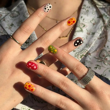 Art inspo: Η nail artists εμπνεύστηκε από τη Γιαπωνέζα εικαστικό Yayoi Kusama. Αναπαράγαγε τα εμβληματικά πουά της Kusama σε έντονα χρώματα.