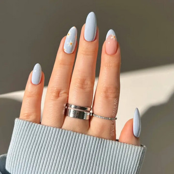 Baby blue: Αναβάθμισε το μανικιούρ σου με την τρυφερή baby blue απόχρωση με λεπτεπίλεπτα σχέδια μαργαρίτας.