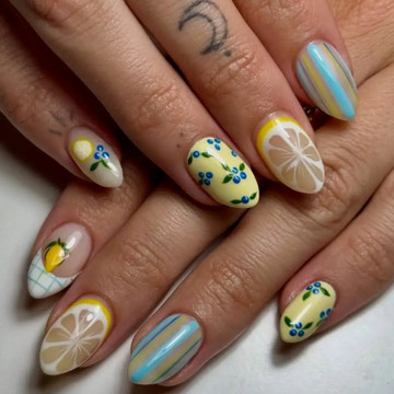 Pic-nic party: Διαφορετικό σχέδιο σε κάθε νύχι, σε ένα μανικιούρ που θυμίζει μοτίβα τραπεζομάντηλου και κουβέρτας πικνίκ. Και ναι, αυτός είναι ένας διασκεδαστικός τρόπος να υποδεχτείς τη νέα σεζόν.