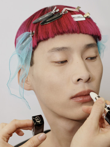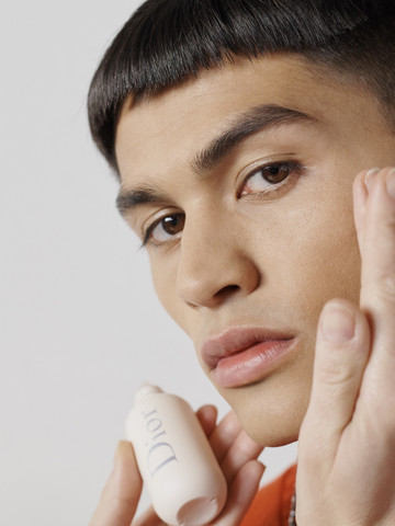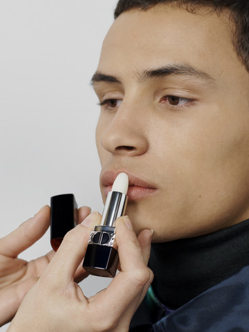 Ο Peter Philips, δημιουργικός διευθυντής και διευθυντής εικόνας του μακιγιάζ Dior δημιούργησε ένα φυσικό αποτέλεσμα με έμφαση στο καθαρό, φωτεινό και άψογο δέρμα για την ανδρική, φθινοπωρινή συλλογή 2021 του Kim Jones.