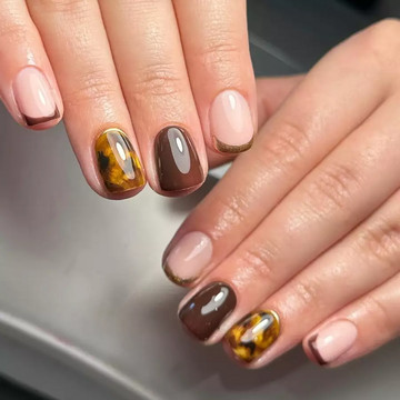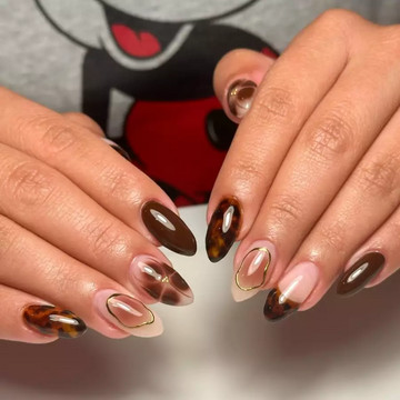 Τα tortoiseshell nails αποτελούν μία από τις πιο κομψές και εντυπωσιακές επιλογές για τη φθινοπωρινή και χειμερινή περίοδο. Το ιδιαίτερο εφέ και η λαμπερή υφή τους ταιριάζουν απόλυτα τόσο σε κοντά όσο και σε μακριά νύχια, προσδίδοντας έναν αέρα εκλεπτυσμένης πολυτέλειας στο συνολικό σου beauty look. Εμπνευσμένο από το φυσικό μοτίβο του κελύφους της χελώνας, αυτό το μανικιούρ συνδυάζει αποχρώσεις καφέ και κεχριμπαριού, ενώ το γυαλιστερό top coat χαρίζει εντυπωσιακή λάμψη και διάρκεια.