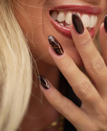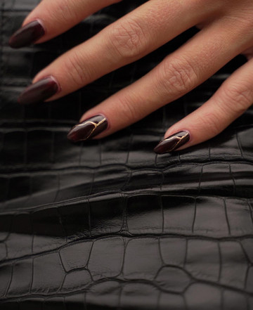 Συγκεκριμένα, έβαψε τα νύχια της με ένα red-brown χρώμα και στον παράμεσο και στο μικρό δάχτυλο είδαμε τη λεπτομέρεια που έκανε τη διαφορά στο υπέροχο μανικιούρ της. Σε αυτά τα δάχτυλα, υπάρχουν χρυσές γραμμές σαν ρωγμές, που φαίνεται σαν να σπάνε τα νύχια της.