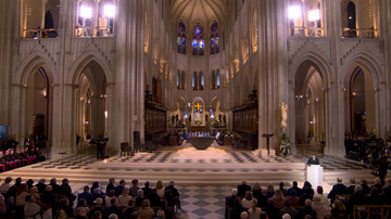 «Αποφασίσαμε να ξαναχτίσουμε [την Παναγία των Παρισίων] για να είναι ακόμη πιο όμορφη», ανέφερε. «Επιλέξαμε την αδελφοσύνη» πρόσθεσε, ευχαριστώντας τους δωρητές και όσους εργάστηκαν για την αναστήλωση.